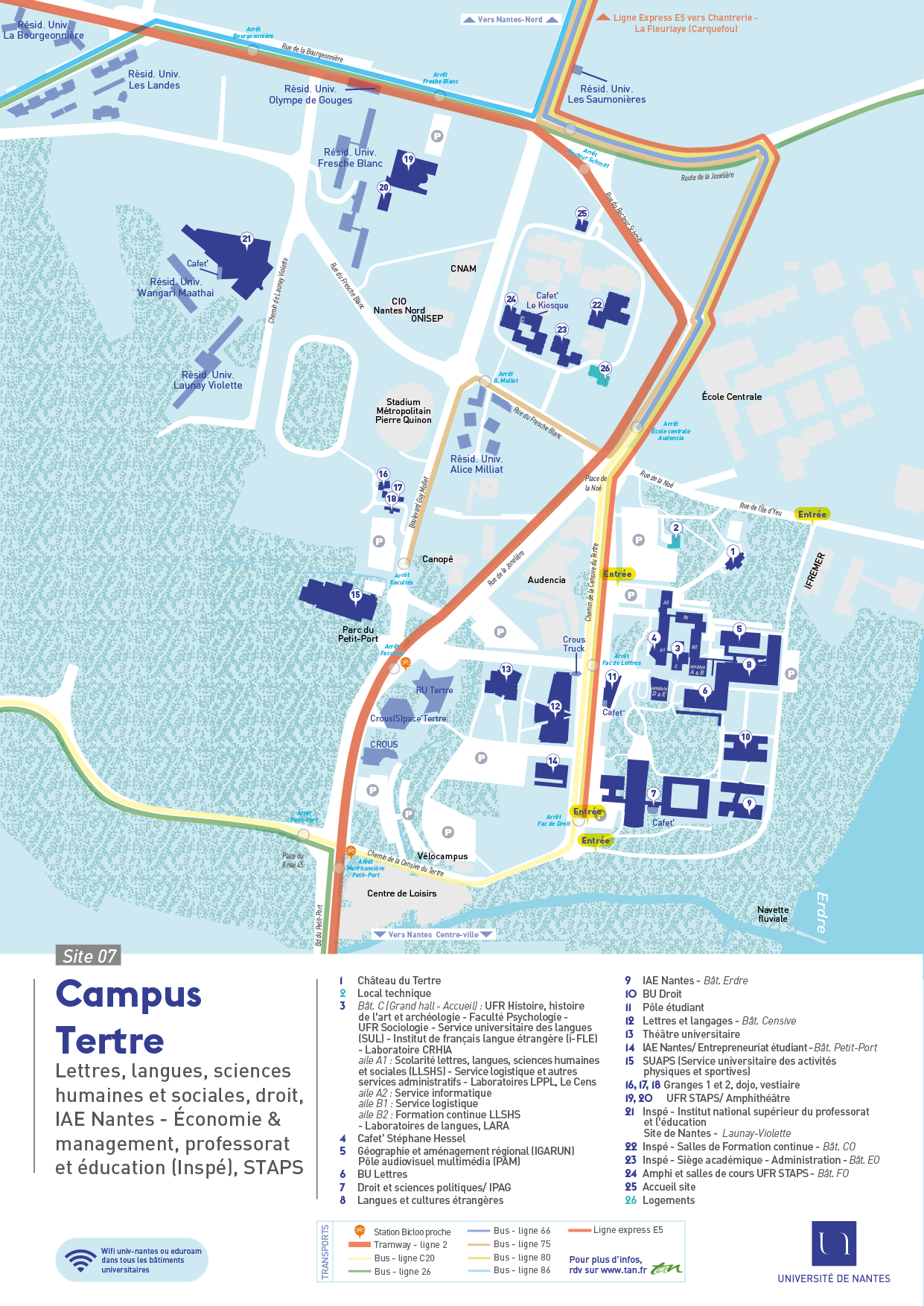 By tram: from the SNCF station, North exit, take line 1 towards François Mitterand to the Commerce stop, then line 2 towards Orvault Grand Val - stop École Centrale Audencia or Facultés.