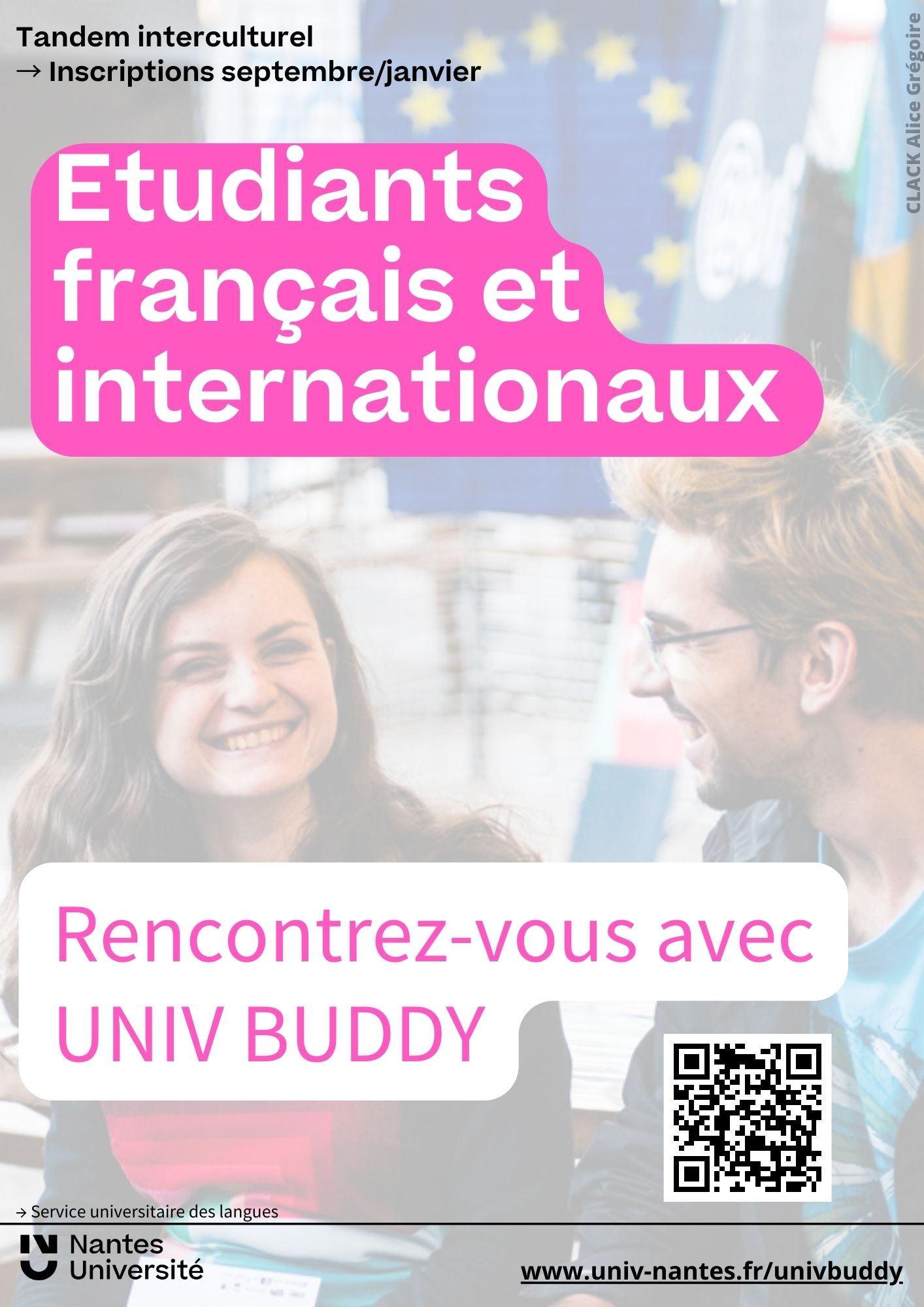 Le dispositif Univ Buddy permet de mettre en relation les étudiants français et internationaux autour de rencontres et d'activités linguistiques, culturelles et/ou sportives au sein de l’Université et hors les murs.